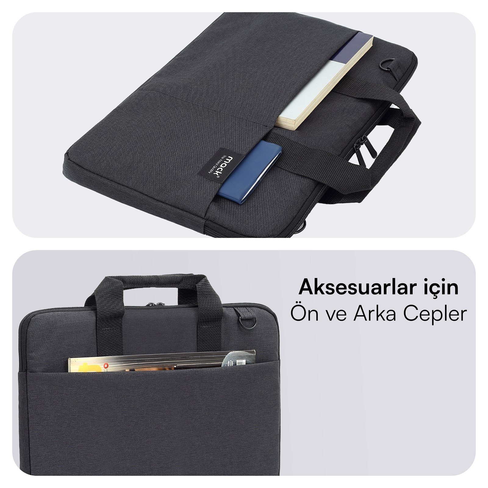 Ergonomik ve şık tasarımı sayesinde Laptop çantası hem iş çantası hem evrak çantası olarak kullanılabilir. Ayrıca aksesuarlar için özel olarak tasarlanmış ön, arka ve iç cepler, kullanıcının eşyalarını organize etmesine ve kolay erişim sağlamasına yardımcı olur.